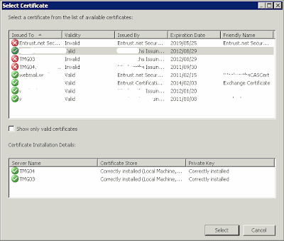 Important Step – If the certificate contains intermediary or root certificates you will have to reboot the TMG server(s) before it will function correctly